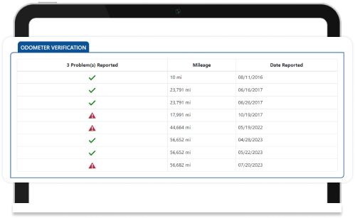 Every year, the National Highway Traffic Safety Administration diligently uncovers a staggering number of cases - more than 450,000 - where cars are being sold across North America with discrepancies in their odometer readings, raising concerns about their true mileage. To address this prevalent issue, our dedicated vehicle history report steps in as a powerful tool, allowing you to meticulously verify the accuracy of the odometer mileage. By harnessing the data within our comprehensive report, you gain the insight needed to not only establish authenticity but also to thwart any potential attempts at rollback, ensuring your confidence in every automotive transaction.
