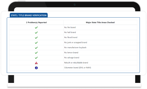We verify your VIN Number against millions of records to get up to date information from State, Federal, Police, Insurance and auction database